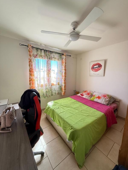 Elle offre un espace de vie agréable et lumineux avec un coin séjour et un coin cuisine, trois chambres, un WC et une salle d'eau.