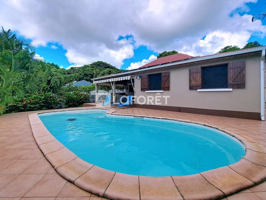 L'agence Laforêt Baie-Mahault vous propose en exclusivité au Lamentin, une villa de type F4 avec piscine, édifiée sur un terrain arboré de 800m² entièrement clôturé et fermée par un portail motorisé. Composée d'un séjour en L, d'une cuisine américaine et son cellier attenant, de trois chambres climatisées avec dressing, de deux salles d'eau dont une avec WC et de toilettes indépendantes, cette villa conviendra parfaitement à une famille en quête d'un nouveau toit! Une terrasse de près de 25m² donnant sur une piscine au sel vient agrémenter le tout pour profiter de moments conviviaux en famille ou entre amis. Un carport pour deux véhicules, un cabanon de jardin complètent l'ensemble; une citerne enterrée pallie aux éventuelles coupures d'eau et des panneaux solaires assurent une autonomie énergétique! Située sur la Route de Boisbert, proche de toutes commodités, Jarry est accessibles en 15 mn ! En résumé l'agence Laforêt vous propose en exclusivité cette jolie villa de type F4 proche de toutes commodités au Lamentin. Pour plus de renseignements appelez Brigitte au xx-xx-xx-xx-xx Les informations sur les risques auxquels ce bien est exposé sont disponibles sur le site Géorisques : www.georisques.gouv.fr Brigitte TREBOS (EI) Agent Commercial - Numéro RSAC : 900314899 - PAP.