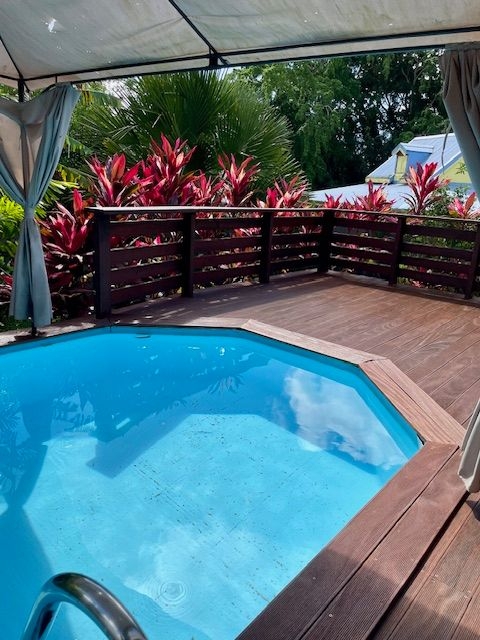 la terrasse conviviale prolongée par une piscine pour se détendre