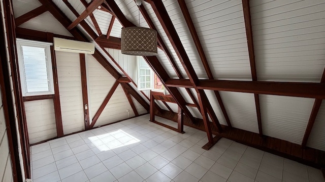 À l’étage, deux chambres supplémentaires, elles aussi climatisées, ainsi qu’une salle d’eau avec WC, permettent d’accueillir famille et amis dans les meilleures conditions.