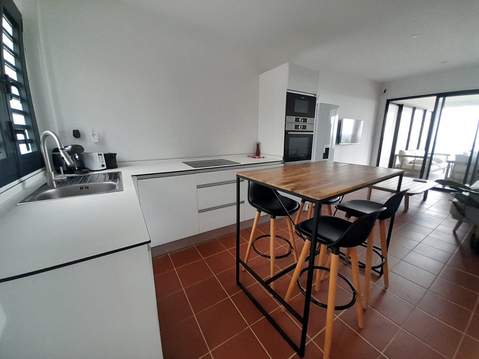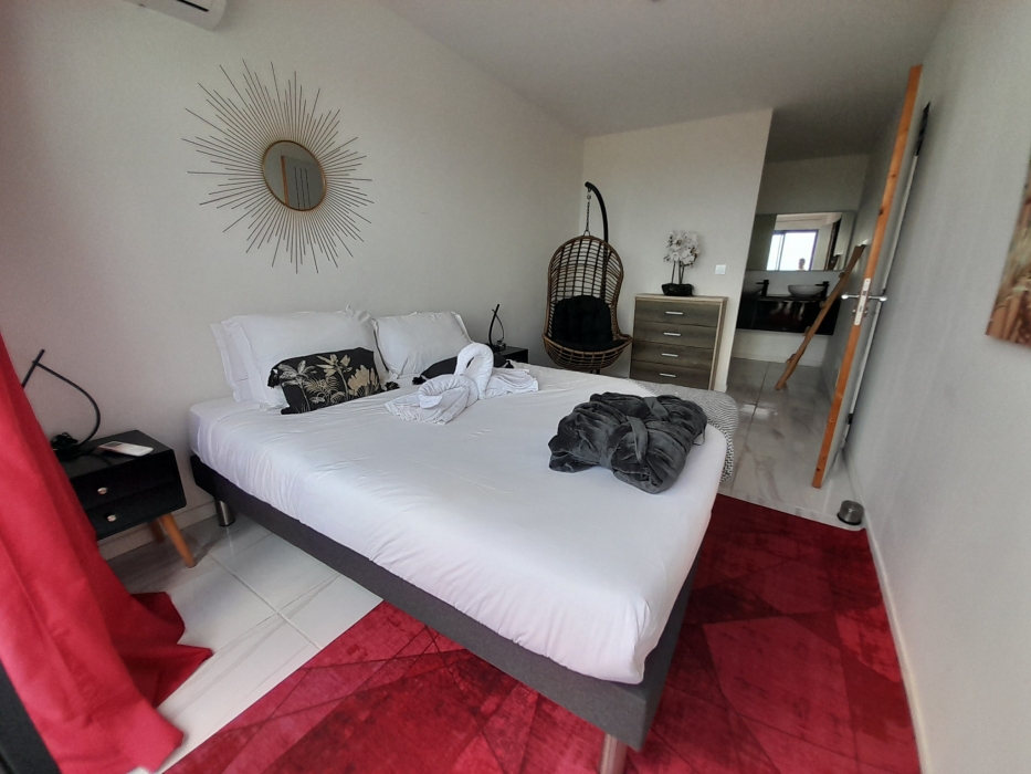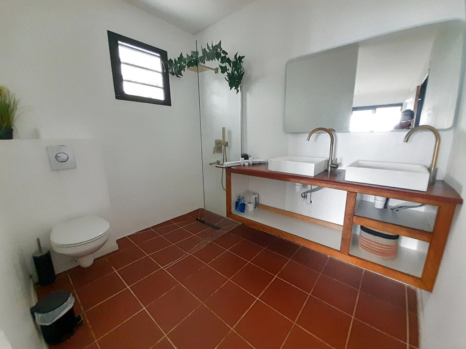 A l'étage, les 2 appartements entièrement meublés et équipés comprennent chacun une cuisine entièrement équipée ouverte sur le séjour, une chambre climatisée, un salle d'eau et une terrasse.
