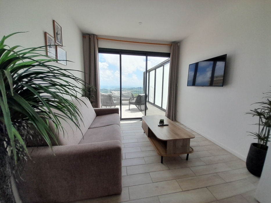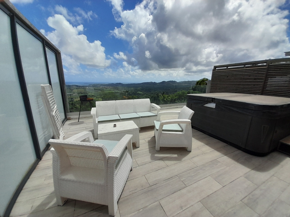 ACS IMMOBILIERS vous propose sur la commune du François ce récent immeuble de standing de 4 appartements T2 avec une magnifique vue mer et campagne, édifié sur une parcelle de 436m2.