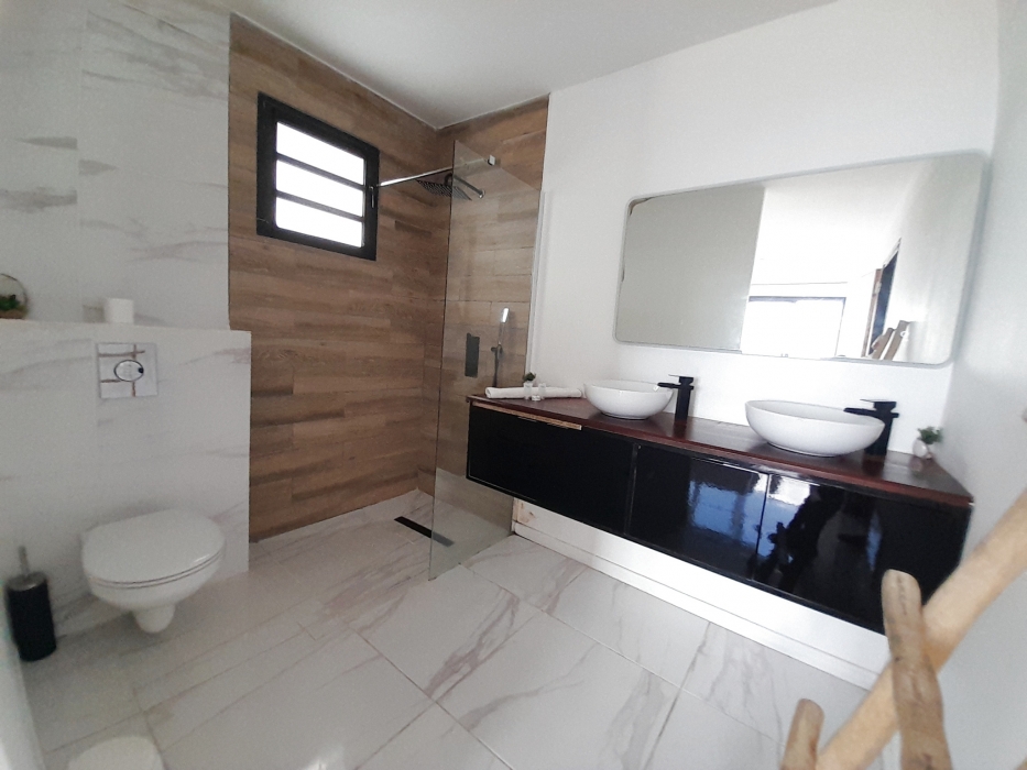 Au rez-de-chaussée, les 2 appartements entièrement meublés et équipés comprennent chacun une cuisine entièrement équipée ouverte sur le séjour, une chambre climatisée, un salle d'eau et une terrasse avec jacuzzi encastré.