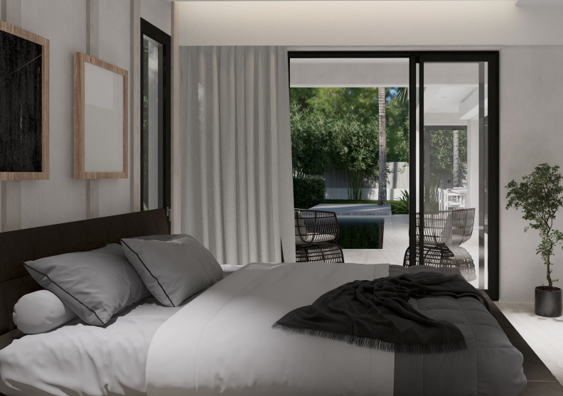 - la villa propose 3 chambres spacieuses, dotées de grandes fenêtres permettant une lumière naturelle d'entrer dans la pièce et créant une atmosphère chaleureuse. Chaque chambre bénificie de sa propre salle de bain privative aménagée.