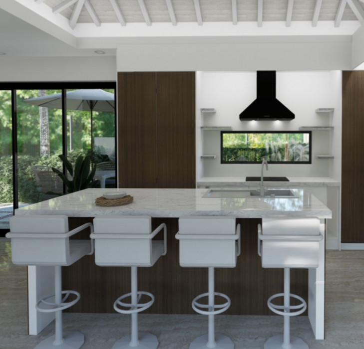 - la villa propose 3 chambres spacieuses, dotées de grandes fenêtres permettant une lumière naturelle d'entrer dans la pièce et créant une atmosphère chaleureuse. Chaque chambre bénificie de sa propre salle de bain privative aménagée.