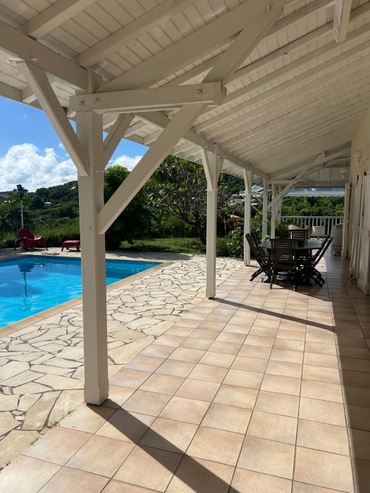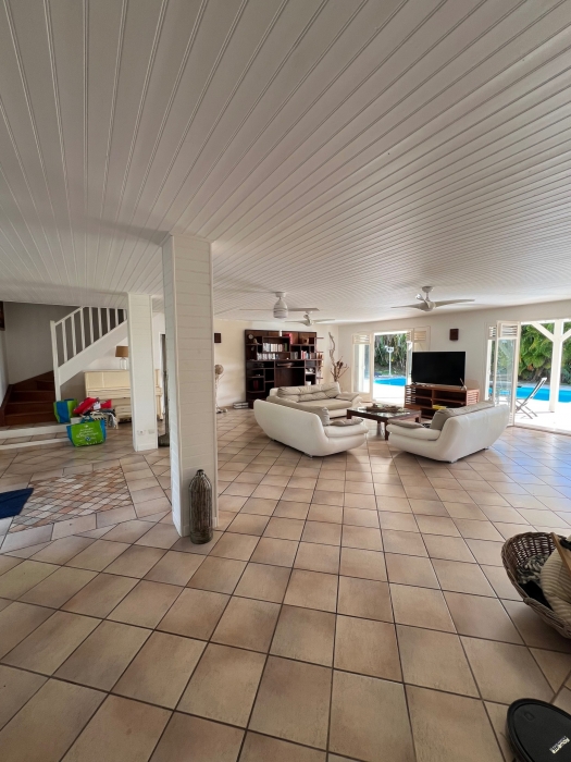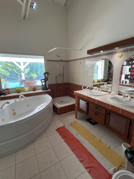Le Robert (97231), Villa d'exception F6 dans un quartier résidentiel et au calme. C'est une villa d'exception à la fois dans sa situation géographique et dans ses prestations et volumes. Son séjour a une superficie de plus de 69 m2 et offre une vue piscine et mer, comme de nombreuses pièces de la maison. Son architecture avec son agencement est très équilibré. Toutes ses chambres bénéficient d'une salle d'eau voir d'un dressing et sa spacieuse suite parentale en RDC à un dressing et une salle de bain/salle d'eau, un atout pour cette maison.