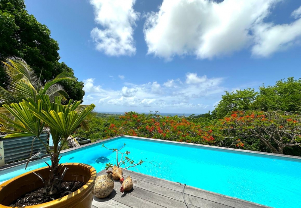 Le VAUCLIN: Très Belle villa de style créole T6. Avec ces 4 vraies chambres dont une avec mezzanine, cette propriété est conçue avec des essences de bois du brésil en majorité. Pour un confort optimal les chambres sont climatisées. Un chauffe-eau solaire vous assurera de belles économies et la villa est sécurisée avec des volet en bois. Vous profiterez d'une importante hauteur sous plafond de 4 mètres ce qui garantit un confort climatique et visuel intéressant. La grande plage de la piscine est en deck avec un beau rendu visuel. La fosse septique est de2022 (rare) et la construction de 2002 est récente. Du séjour a la piscine vous serez comblés par une magnifique vue mer. Le secteur est bien ventilé par les alizés, calme et résidentiel. Stationnement facile + 1 parking couvert.... Nous serions ravis de vous faire découvrir votre futur chez vous et les qualités de cette belle villa, à bientôt pour une visite privée.
