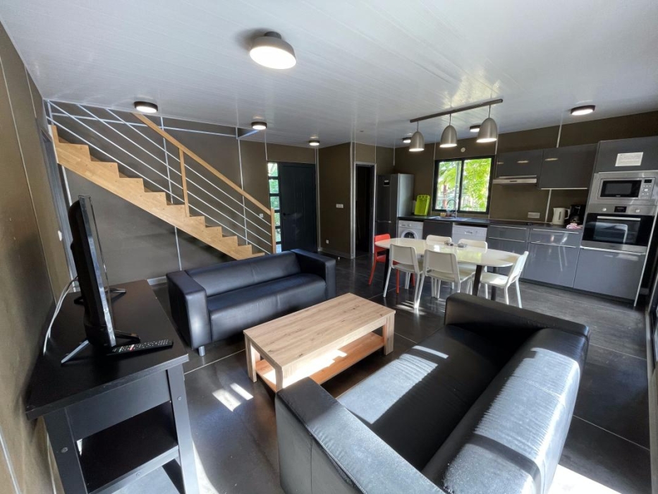 Cuisine entièrement équipée : fonctionnelle et généreuse, elle permet d'accueillir jusqu'à 8 personnes, avec électroménager complet et équipements de qualité.