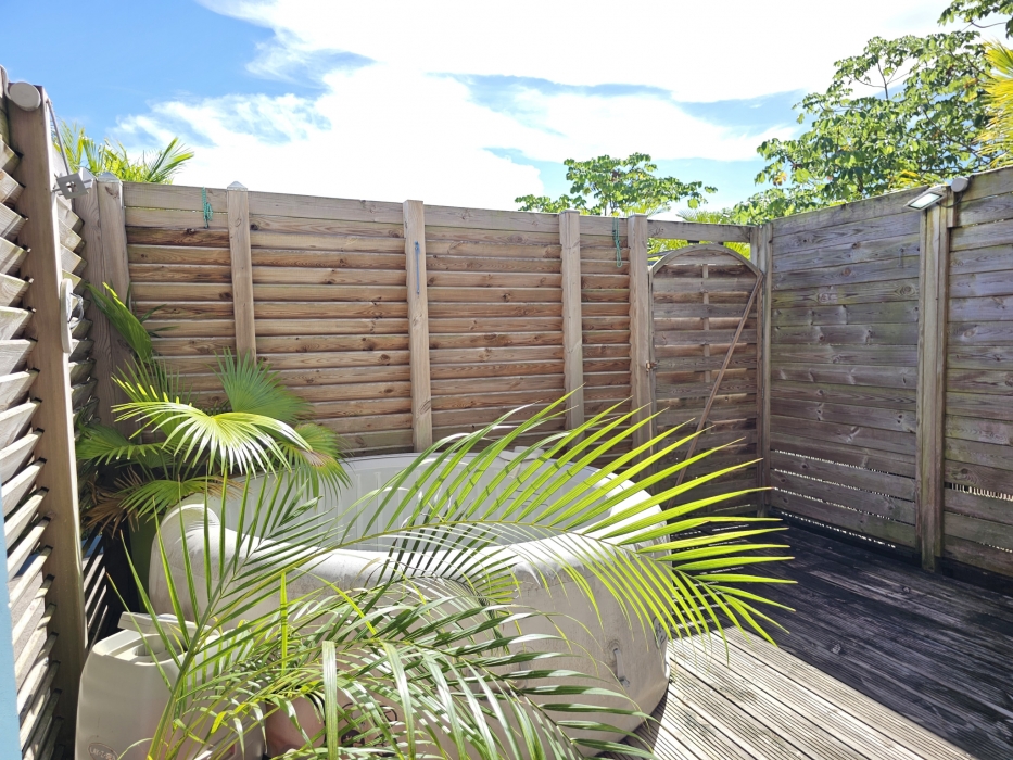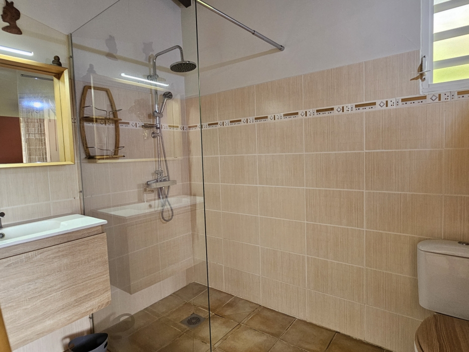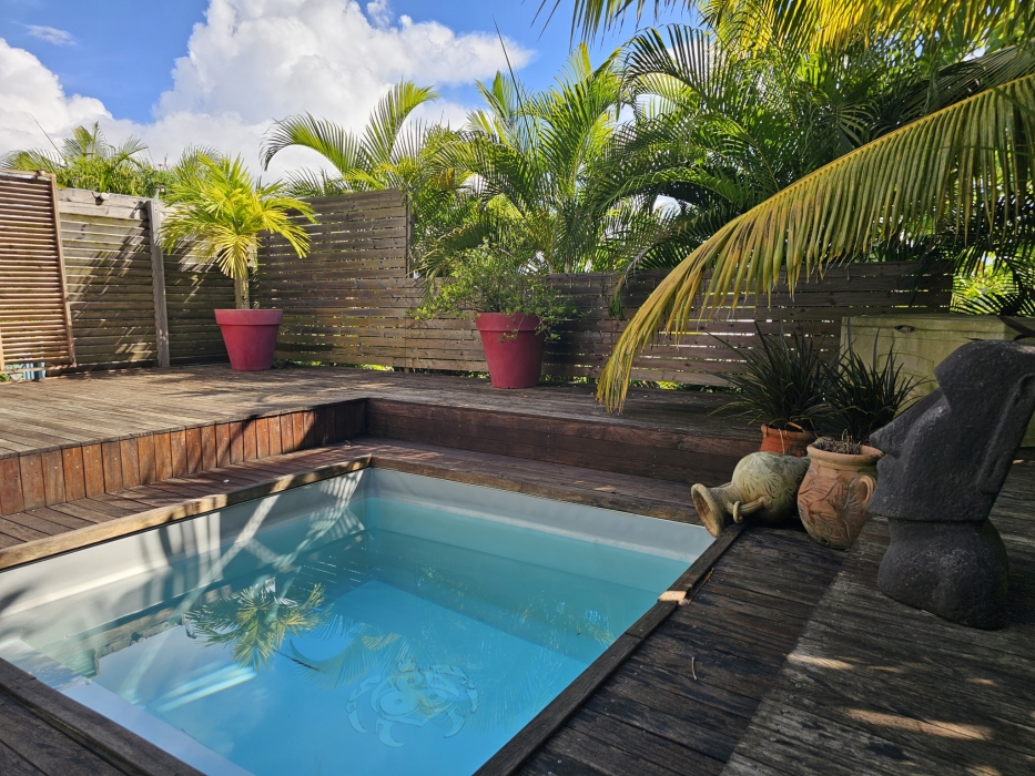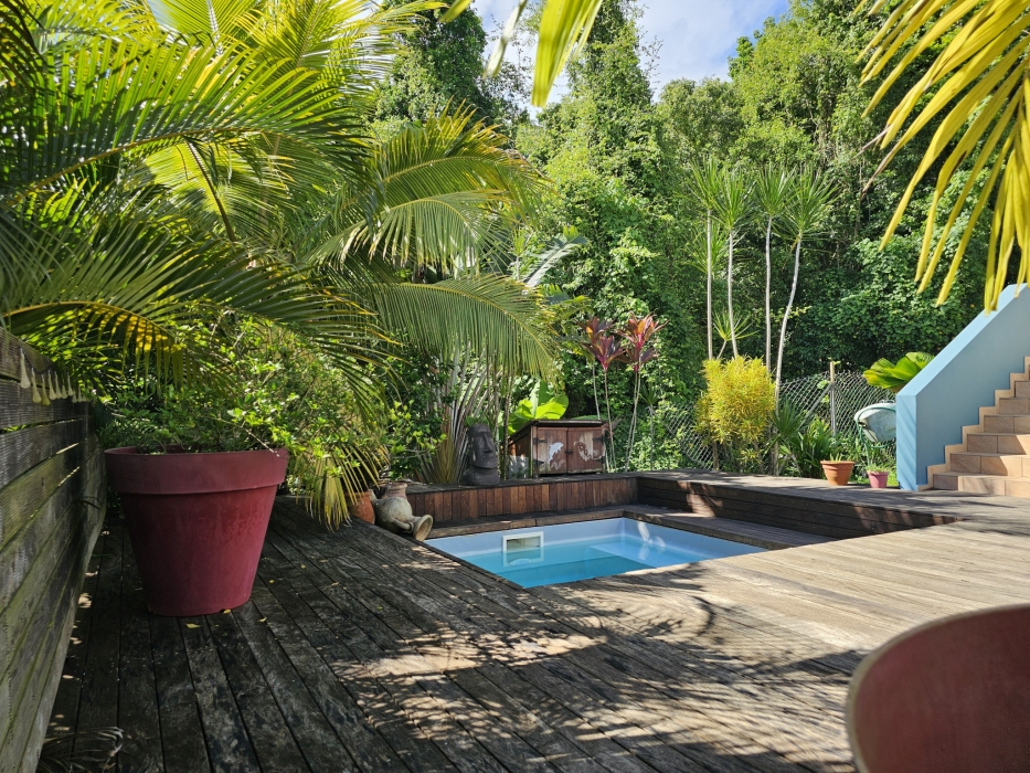 ACS Immobiliers vous propose, dans un quartier calme et prisé, cette maison d'habitation T3 proposant en RdC un T2 indépendant pouvant générer un revenu locatif attrayant. Totalisant 186m2 au sol avec sa superbe terrasse et un atelier de 30m2. Dotée d'un portail électrique et de places de stationnement dans l'enceinte de la propriété, cette villa, aux volumes généreux, propose, une cuisine ouverte sur le séjour sublimé par sa charpente apparente donnant un très beau volume à cet espace de vie intérieur. Dans la partie nuit, une chambre climatisée avec sa salle d'eau attenante avec douche à l'italienne, une deuxième chambre avec brasseur d'air et une salle d'eau avec wc. La cuisine et le séjour donnent sur une belle terrasse couverte de plus de 35m2 offrant une vue campagne mais également une petite vue mer et baie de Fort-de-France. En RdC, un logement T2 entièrement meublé et équipé, prêt à l'emploi, avec son accès indépendant, propose une terrasse couverte avec son coin cuisine, prolongé par un espace détente avec jaccuzi, une chambre climatisée et sa salle d'eau attenante avec wc. Pour compléter ce bien, un atelier, un espace buanderie, un dépôt, une cuve de récupération d'eau de 1.100l et un ballon solaire. En extérieur, au coeur d'un jardin arboré, sans vis-à-vis, vous apprécierez le bac à punch au traitement au sel, la terrasse en deck pouvant accueillir vos transats dédiant ainsi cet espace à la détente !