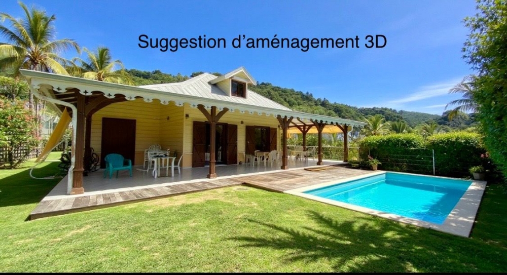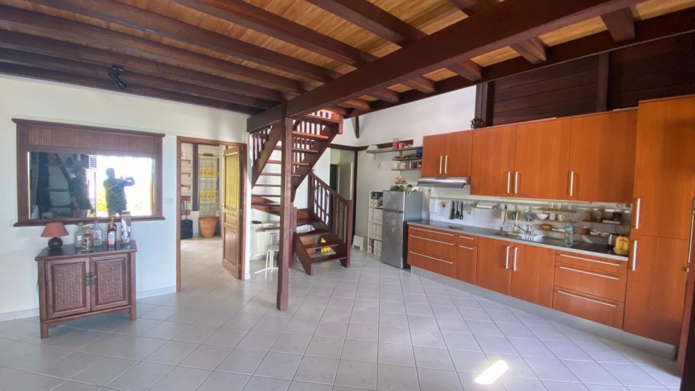 Située dans un quartier résidentiel très recherché , villa T4 avec appartement F3 en rez-de-jardin très belle vue sur la mer et les pitons du Carbet.