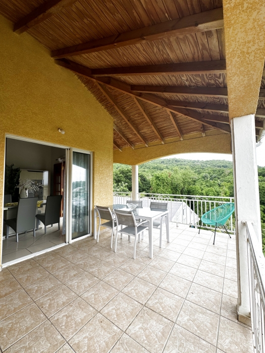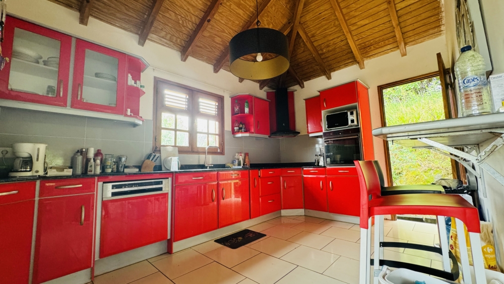 Dans la commune de Pointe-Noire, faîtes l'achat d'un nouveau logement avec cette grande villa disposant d'une jolie terrasse agréable avec une vue sur la mer. Logement attractif pour une famille de taille moyenne. Pour organiser une visite de cette maison, votre agence BOUILLANTE est à votre disposition au xx-xx-xx-xx-xx. Elle possède un coin salon de 31.2m2, un espace nuit comprenant 3 chambres et un espace cuisine équipée et une salle d'eau. La surface de l'habitation est de 100m2 + 20 m2 au rdc pour une buanderie et une salle d'eau avec wc. La parcelle est de 700 m2 et une terrasse d'une surface de 20m2. La construction s'est achevée en 2014. Ce logement vous fait bénéficier d'une aire de parking pour se garer et d'un garage de 40 m2. Pour ce qui est du prix de vente, il est fixé à 299 000 € honoraire d'agence de 7% à la charge du vendeur. La taxe foncière s'élève à 1 543 € pour 12 mois. Plage de Petit anse de POINTE NOIRE et port de Baillargent proche.