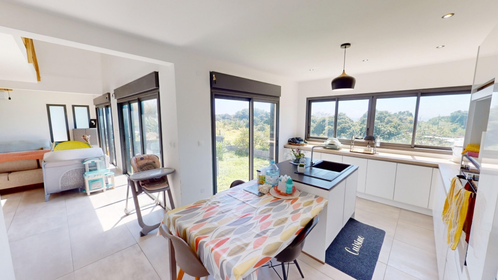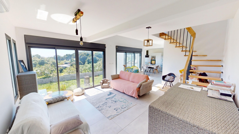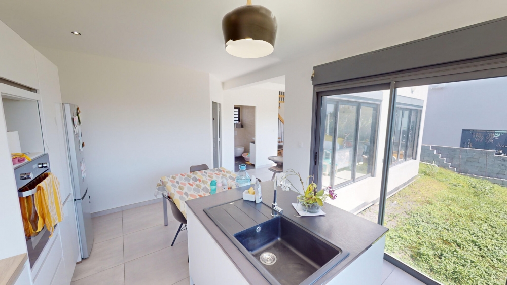 Premium Immobilier vous propose à la vente à Saint-Benoît, une maison moderne et lumineuse d'une surface de 110 m2 habitable. Vous allez apprécier ses nombreuses ouvertures vitrées, offrant une belle luminosité et une aération agréable de chacune des pièces. Edifiée sur un terrain de 400 m2, elle se compose de la façon suivante : Au rez-de-chaussée : - un vaste séjour de 32 m2 - une cuisine fonctionnelle dotée de nombreux rangements et d'un ilot central - une chambre - une salle d'eau - un WC A l'étage : - deux chambres dont une suite parentale avec dressing - une salle de bain - un WC - un espace bureau - un balcon offrant une vue dégagée Cette propriété profite d'un environnement calme et résidentiel situé à l'entrée de Saint-Benoît, à deux pas des axes routiers et du collège Alexandre Monet. Une construction récente, des prestations de qualité, un environnement de choix, pour le bien-être de votre famille. Pour consulter les informations sur les risques naturels et technologiques auxquels ce bien pourrait être exposé veuillez consulter le site Géorisques http://www.georisques.gouv.fr Premium Immobilier - achat - vente - à vendre - maison F4 - villa F4 - Saint-Benoît - Réunion