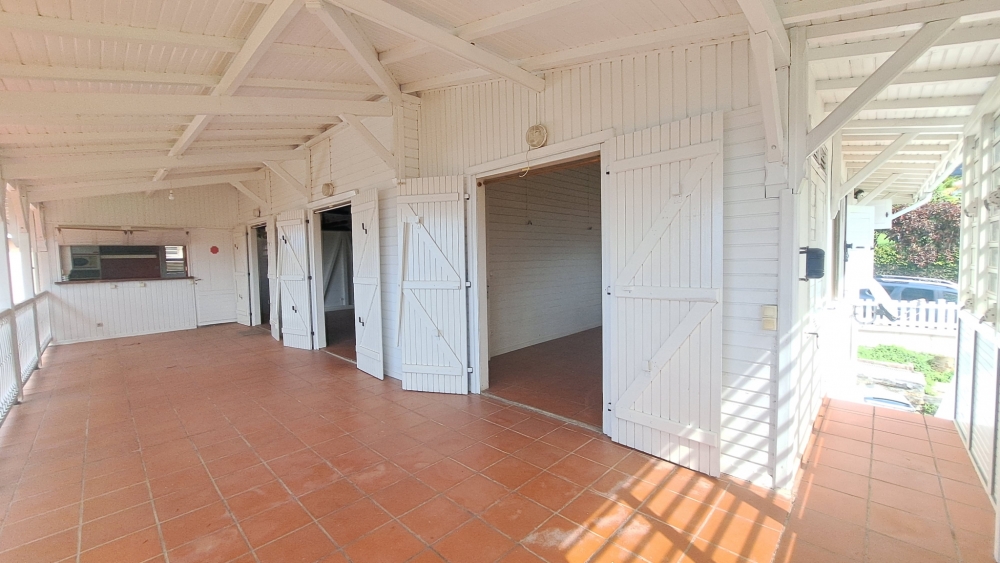 Édifiée avec des matériaux nobles et durables, la propriété se distingue par une structure alliant le savoir-faire guyanais et guadeloupéen. La charpente, entièrement réalisée en bois d’Angélique, essence réputée pour sa solidité et sa longévité, témoigne du soin apporté à sa conception. L’escalier menant à la mezzanine, entièrement façonné en amarante, ainsi que la mezzanine elle-même, réalisée en Saint-Martin rouge, confèrent à l’ensemble un caractère authentique et assure la pérennité du bâti.