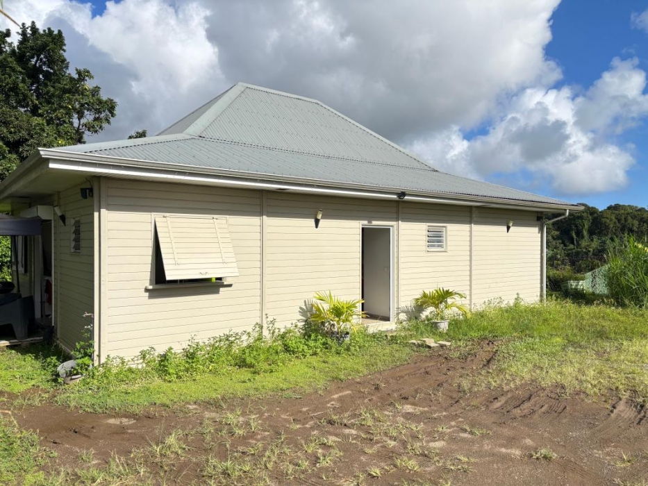 Maison de type F5 comprenant séjour, cuisine, salle d'eau, trois chambres, une chambre avec salle d'eau.