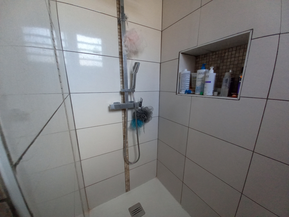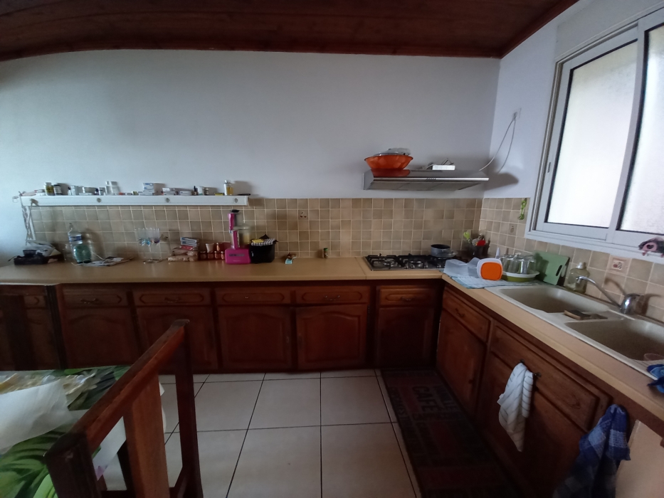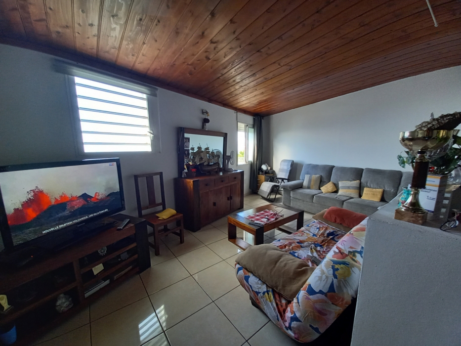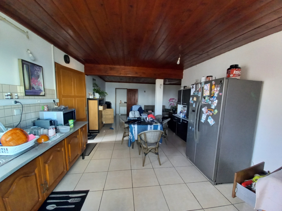 Saint-Denis, Montgaillard, villa F4/5 de plain pied SH : 154 m2, sur une parcelle de terrain de 357 m2 plat et clôturée, divisée en deux biens avec un accés indépendant, possibilité de retirer la cloison. A l'entrée la première habitation comprend un grand séjour, une cuisine ouverte équipée, deux chambres, une buanderie, une salle de bains, un wc, un grand garage. A l'arrière un F2 comprenant un séjour-salle à manger sur une cuisine ouverte équipée, une cuisine extérieure, un abri, une grande chambre avec une vue mer, une salle de bains, un wc. Située dans une impasse au calme. Taxe foncière: 1304 €.