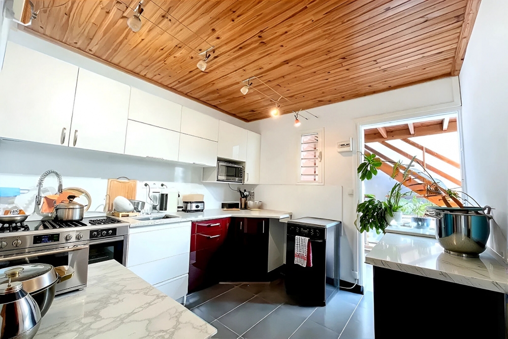 PremiumImmobiliervousprésente à la vente en exclusivité àl'ÎledeLaRéunion, plus précisémentau coeur de la ville de Saint-Denis,à proximité du collège Saint-Michel,cette charmantemaison de ville de type F6 . Vous apprécierezson emplacement idéal proche de la gare routière, du petit marché et de la rue Maréchal Leclerc La maison à vendre comprend : - Une petite courette intérieure - Un séjour/salle à manger - une cuisine indépendante aménagée et équipée - Une salle de bains avec wc - Une chambre parentale au rez-de-chaussée avec grands placards en bois A l'étage, 2 chambresclimatiséesavecplacards et un bureau offrant un accès sur une grande terrasse en deck couverte et intimiste. Retrouvez aussi une salle d'eau et un wc aménagés dans une annexe de la maison ainsi qu'un appentis pratique pour stocker et entreposer. La maison est fibrée. La maison dispose d'un espace de stationnement extérieur attenant à la maison. Cette maison de ville de type F5 , disponible à la vente immédiatement est idéalepour une famille de citadin en quête de praticité au quotidien. En outre l'emplacement de la maison à proximité des écoles, collèges et lycées parmi les meilleurs de la Réunion font de ce bien un pied à terre idéal pour une rentrée scolaire réussie à La Réunion. Téléphonez-nous, et allons-y ! 21 RUE RUISSEAU DES NOIRS 97400 SAINT-DENIS 06,93,06,23,83 WWW.PREMIUMIOI.FR Pour consulterlesinformationssurlesrisquesnaturelsettechnologiquesauxquelscebien pourraitêtreexposéveuillezconsulter lesiteGéorisques http://www.georisques.gouv.fr ». A VENDRE - Ile De la Réunion - VENDRE/ ACHETER / SAINT-DENIS / REUNION - MAISON F5 Cécile BIRON (EI) Agent Commercial - Numéro RSAC : - .
