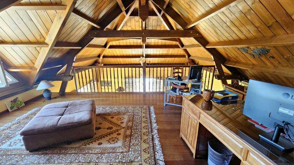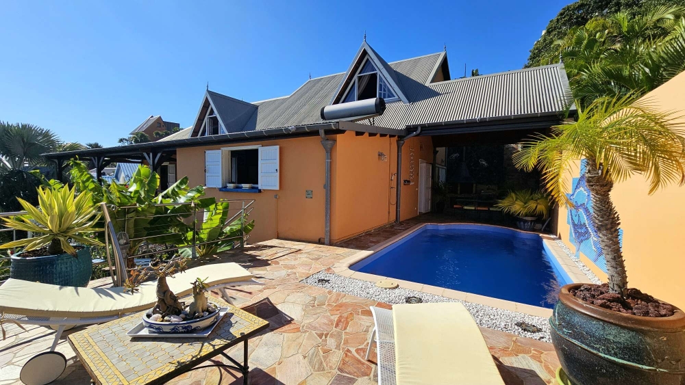 Bellepierre - Villa d'exception avec vue mer et montagne à 5 minutes du CHU Félix Guyon, dans un lotissement privé très recherché. Au c?ur de l'un des quartiers les plus recherchés de Saint-Denis, cette villa de caractère à l'architecture raffinée, d'environ 210 m² habitables se déploie sur un terrain clos et paysager de 815 m², à l'abri des regards, dans un environnement paisible et privilégié. Dès l'entrée, le charme opère : cette maison s'annonce différente des autres... L'originalité commence par l'accès, sur ce premier niveau, à la 1ere suite avec salle d'eau et WC, ainsi que de beaux volumes, d'aucun vis-à-vis et d'une très belle charpente bois. On descend quelques marche et on accède alors à une élégante mezzanine aménagée en bureau, dominant le séjour. Nous prenons maintenant le très bel escalier fait sur mesure par des artisans bénéficiant d'un savoir faire exceptionnel, Les compagnons du Devoir et du Tour de France afin d'accéder au niveau principal de la maison. On y retrouve le vaste séjour / salle à manger qui se prolonge par une grande varangue de plus de 30 m² offrant une vue imprenable sur la mer et la montagne. La cuisine, conçue avec des matériaux de qualité, bénéficie d'un accès à la varangue d'un côté mais également à l'espace extérieur, idéal pour recevoir, avec piscine, table à manger et cuisine extérieure. Sur ce niveau, une 2e suite spacieuse avec salle d'eau et WC privatifs. Au niveau le plus bas de la maison, Une dernière suite totalement indépendante pour les invités, un grand garage où l'on peut recevoir ou garer jusqu'à 5 véhicules, une grande buanderie avec de nombreux rangements. Cet espace à été pensé à l'origine afin d'être, si besoin, transformé en logement totalement indépendant. La maison est également entouré d'un joli jardin aménagé qui vous réserve quelques surprises.... Plus de précisions sur cette belle villa : Un savoir-faire d'exception: La charpente ainsi que l'escalier sur mesure ont été réalisés par les Compagnons du Devoir et du Tour de France, réputés pour leur exigence et la qualité inégalée de leurs ouvrages. Chaque détail reflète un véritable travail d'artisanat haut de gamme. Prestations exclusives: Piscine monocoque Sunset au sel, chauffe-eau solaire, portail et porte de garage automatisés, toiture travaillée et finitions créoles? autant d'éléments qui confèrent à cette villa son caractère unique. Taxe foncière : 3 310.00 euros PRIX DE VENTE : 950 000 ? TTC* * (Honoraires de vente charge vendeur) Contact : Caroline JOLU xx-xx-xx-xx-xx ( si le numéro n'est pas visible ici merci de consulter l'annonce depuis notre site internet.) Fixe de l'agence : xx-xx-xx-xx-xx Mail : xxxxxxx@xxxxx Site : www.limmobilieredebourbon.com Les informations sur les risques auxquels ce bien est exposé sont disponibles sur le site Géorisques : https://www.georisques.gouv.fr/