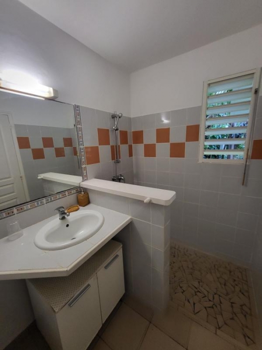Vous disposez d'une vaste chambre climatisée en mezzanine avec un lit d'appoint et un double couchage possible dans le sejour sur un canapé convertible neuf, d'une cuisine équipée avec un passe-plat donnant sur la terrasse ...de quoi garantir un séjour tres agréable à des vacanciers ou pour un pied-a-terre à St Francois.....d'autant que ce bien est vendu integralement meublé !