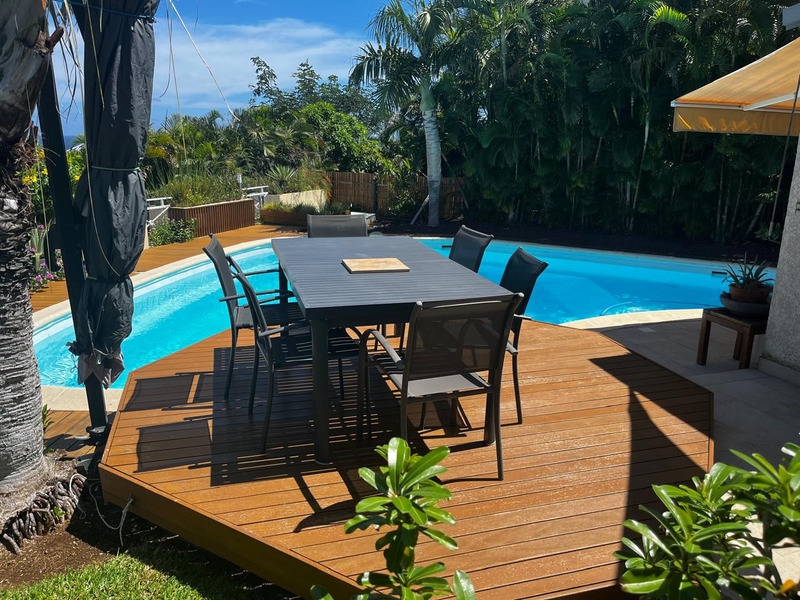 Superbe jardin gazonné et arboré de 500 m². Piscine au sel. 2 Parkings intérieurs couverts. Atelier, buanderie, cellier, cave. Secteur résidentiel très calme, vue océan sur le port de St Gilles Les Bains. Etat irréprochable, maison très saine et parfaitement entretenue. Exposition sud-ouest.