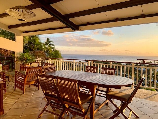 Elle est composée : D'un grande séjour avec cuisine équipée d'une surface de 47 m² donnant sur une très belle varangue de 33 m² avec une vue panoramique sur l'océan .De deux suites parentales , deux autres chambres , une salle de bain , un WC séparé , un Bureau A l arrière de la villa une partie espace vert avec un potentiel à développée. Vous pourrez également profiter de sa belle piscine Chauffée toute l'année avec sa vue dégagée et sans vis à vis pour admirer les couchers de soleils . Cette villa dispose également d'un garage double fermé .