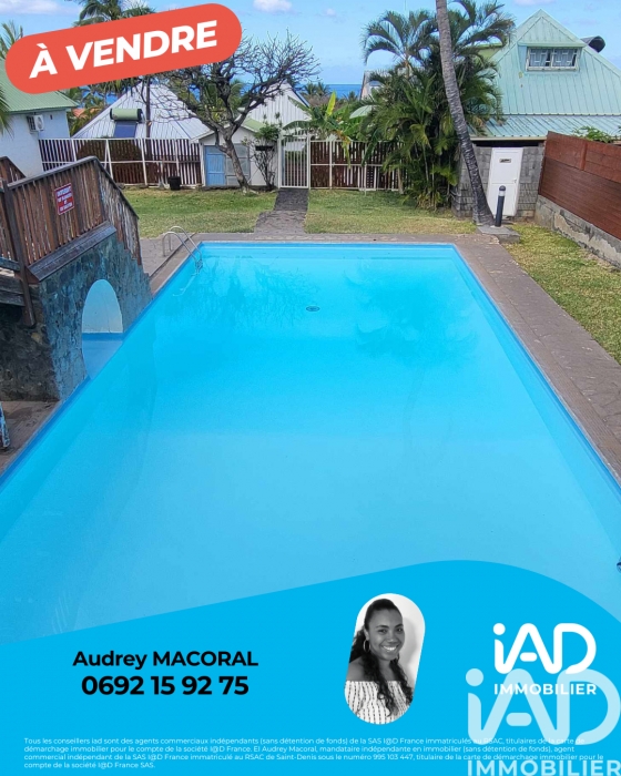 La présente annonce immobilière a été rédigée sous la responsabilité éditoriale de Mme Audrey Macoral mandataire indépendant en immobilier (sans détention de fonds), agent commercial de la SAS I@D France immatriculé au RSAC de SAINT DENIS DE LA REUNION sous le numéro 995103447, titulaire de la carte de démarchage immobilier pour le compte de la société I@D France SAS.