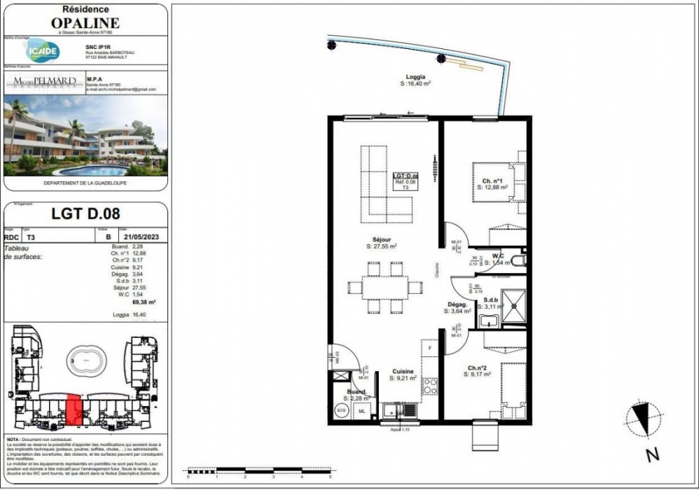 Orpi secteur Gissac sur la commune de Sainte Anne, appartement neuf de type T3 d'une surface totale au sol de 85.78 m² Laissez-vous séduire par la nouvelle résidence Opaline située à Saint Anne. Déclinée du studio aux 4 pièces à partir de 225 200, trouvez l'appartement neuf qui correspond à vos besoins. Proposant une gamme de prestations alliant confort et bien-être, la nouvelle résidence de standing OPALINE vous offre une architecture contemporaine élégante avec une double exposition favorisant ventilation et lumière naturelle. Niché(e) à proximité immédiate de Bois Jolan, l'une des plus belles plages de Guadeloupe, le quartier de Gissac à Sainte Anne vous offre un cadre paisible avec toutes les commodités à moins de 10 minutes à pied : établissements scolaires et médicaux, pharmacie, boulangerie, supermarché. Vous retrouverez également toutes les activités touristiques de votre choix et l'authenticité de la vie locale à découvrir. Différentes prestations et équipements-vous sont proposés : Accès PMR, portail électrique, piscine, vue mer dès le 1er étage. Eligible aux dispositifs Girardin, LMNP, Pinel Outre-Mer, la résidence OPALINE est un lieu où il fait bon vivre que ce soit pour y habiter ou pour investir ! Notre partenaire de confiance, Icade conçoit, construit, gère et investit dans des villes, des quartiers, des immeubles qui sont des lieux innovants, des lieux de mixité, des lieux inclusifs, des lieux connectés et à l'empreinte carbone réduite. Lot D08 - Date prévisionnelle de livraison : 4e trimestre 2025