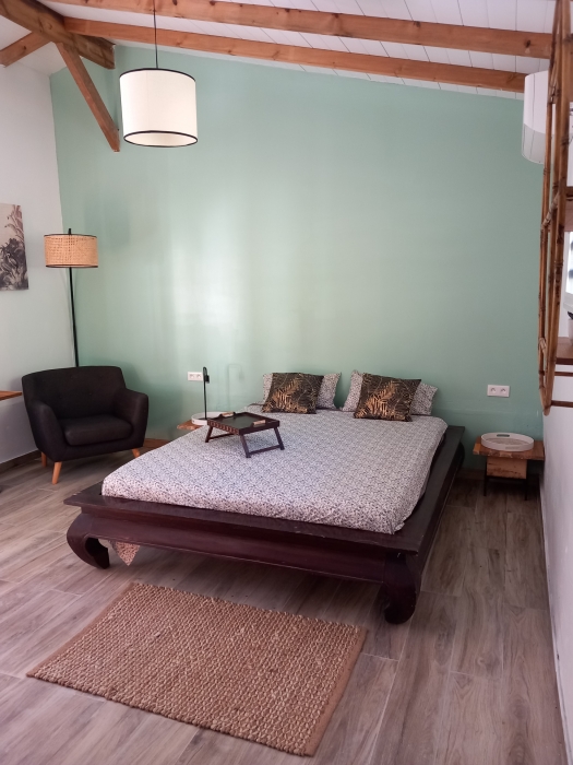 Logement F1 bis : une grande chambre avec salle d'eau, un salon avec cuisine sur terrasse,un jacuzzi privatif. Deux chalets en bois F1 bis : une chambre, une salle d'eau, un coin cuisine, un salon sur terrasse, un bac à punch 2x3 m pour chaque chalet. Annexes : grand débarras/atelier.Système de récupération d’eau et panneaux solaires pour un ensemble écoresponsable ! Idéal pour une résidence principale, secondaire ou un projet touristique.