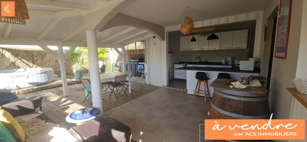 Elle se compose, au rez-de-chaussée, d’un agréable séjour, d’une salle d’eau avec WC et coin buanderie, ainsi que d’une spacieuse terrasse de 40 m2 agrémentée d’une jolie cuisine aménagée et d'une petite cave en bois. À l’étage, trois chambres climatisées, dont une avec son coin salle d’eau ? un dégagement avec grand espace de rangement, ainsi qu’une salle d’eau avec WC. Pour vos instants de détente, un jacuzzi gonflable complète ce bien. Il est également possible d’implanter une piscine, soit en bout de terrasse, soit sur le plateau jardin d’environ 150 m2 situé au-dessus de la terasse. Laissez-vous séduire par cette maison au fort potentiel, située à quelques minutes à pied des plages et des commodités de Sainte-Luce.Un véritable havre de paix.