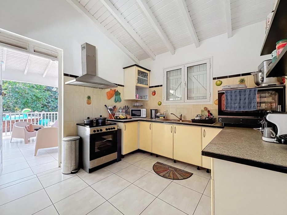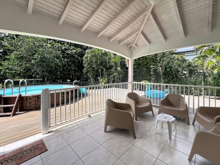 de deux citernes de récupération d'eau de pluie d'une capacité de 500 litres chacune, d'une dalle carrelée d'environ 25 m² pouvant accueillir un carbet ou un aménagement extérieur complémentaire.