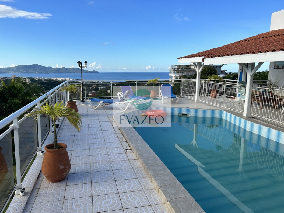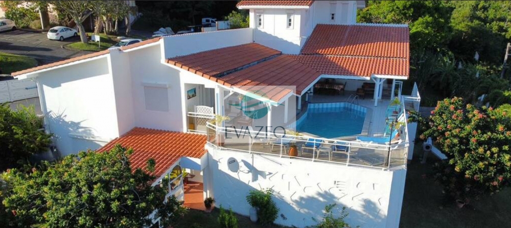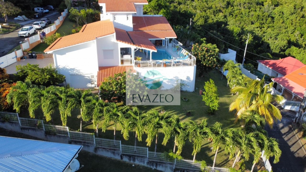 L'agence TROPIK'IMMO vous présente cette remarquable villa d'architecte de grand standing, entièrement construite en dur avec toiture en tuiles sur béton. Cette propriété de 325m2 habitables offre une configuration exceptionnelle avec deux appartements totalement indépendants sur un terrain paysager de 1 450m2.
