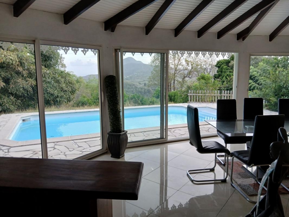 Orpi Ducos vous propose une belle maison T4 avec studio attenant, et deux T3 inachevés, en monopropriété sur une parcelle de 2477 m² , avec piscine et vue mer sur le rocher du Diamant sans aucun vis -à-vis, nichée dans un écrin de verdure.