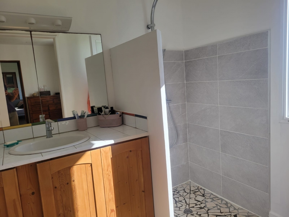Le séjour s’ouvre sur une généreuse terrasse à vivre d’environ 41 m2, idéale pour recevoir et profiter pleinement de l’extérieur. À l’étage, un espace sous combles de 29 m2 au sol, dont 11 m2 à plus de 1,80 m, a été aménagé en une troisième suite avec salle d’eau privative et WC, garantissant à chaque chambre son propre espace de confort et d’intimité.