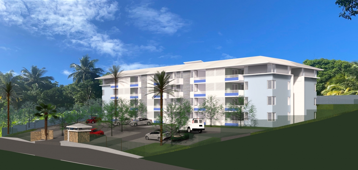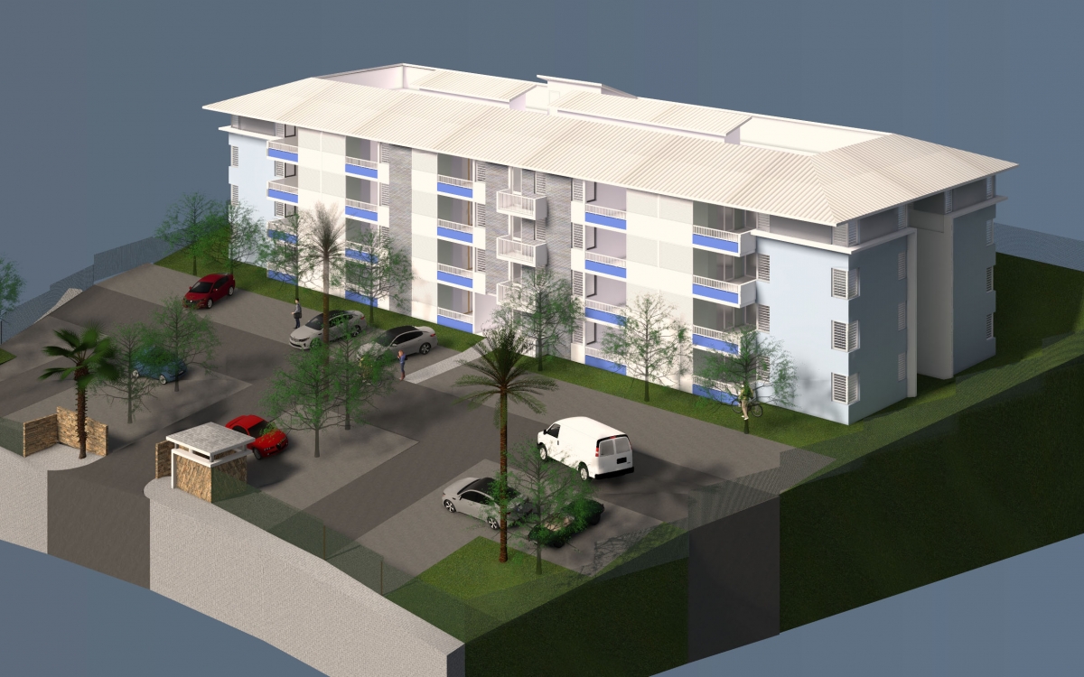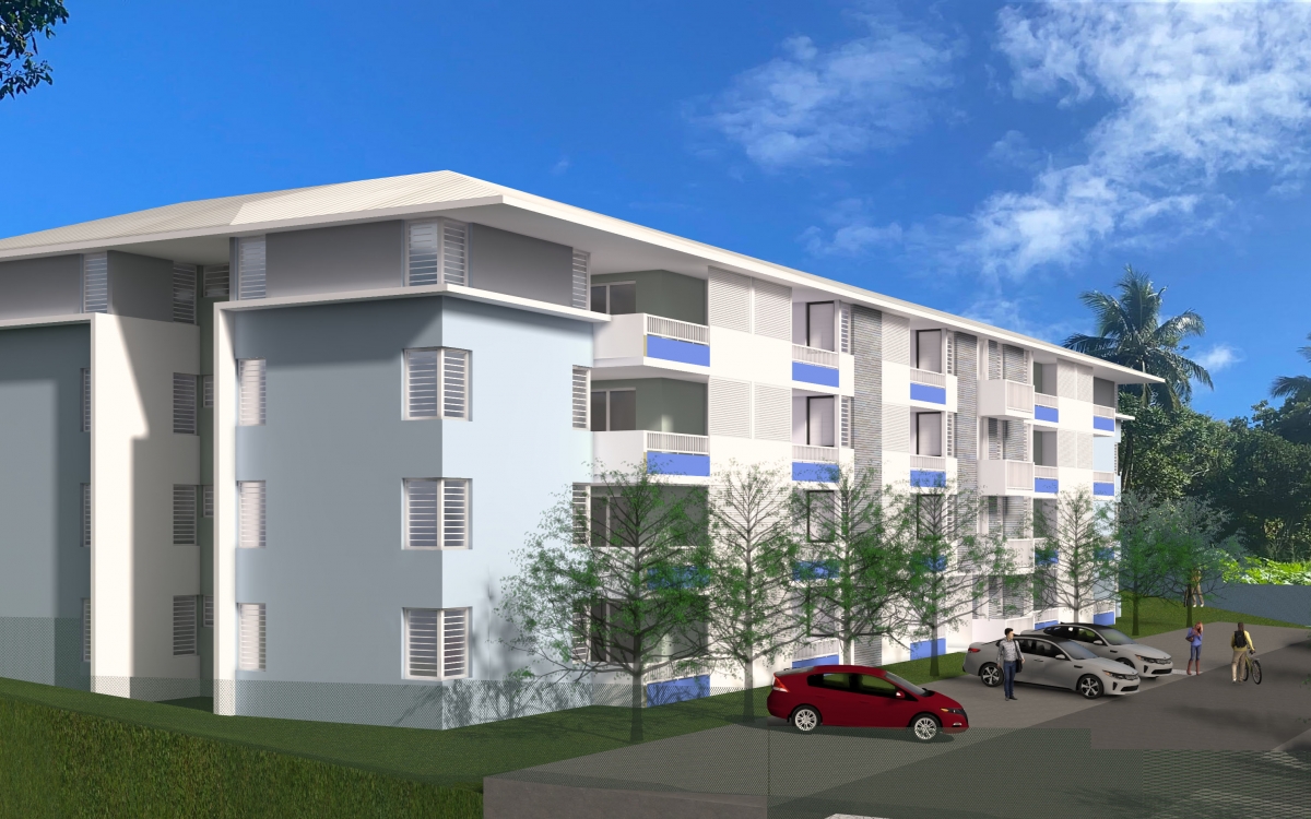 la Résidence Palme Bleue sera composée d'un bâtiment de 36 appartements du T1 au T3 répartis sur 4 niveaux