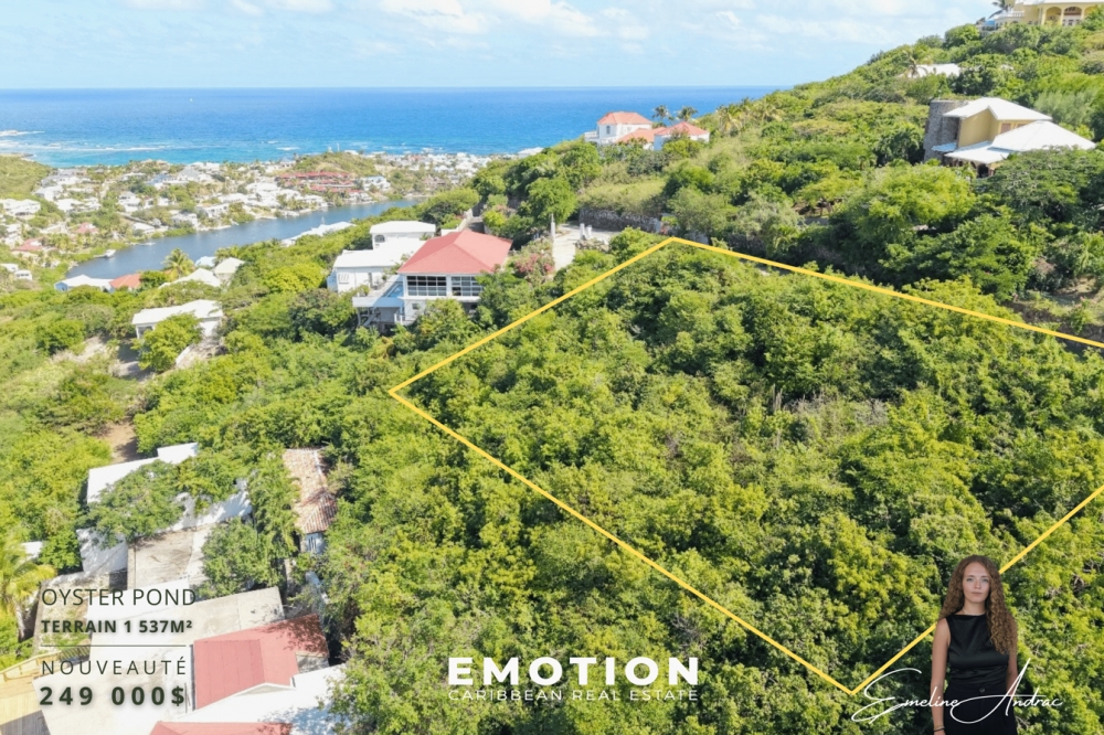 Le cabinet Emotion vous propose à la vente, en dehors des risques de submersion, dans le lotissement sécurisé de Oyster Pond Estate côté hollandais, un terrain situé en point élevé de l’île, offrant une petite vue mer à seulement quelques minutes de la Marina, à 2 minutes de la frontière avec la partie française et à une dizaine de minutes de la Baie Orientale et d’Hope Estate, et Phillisburg.