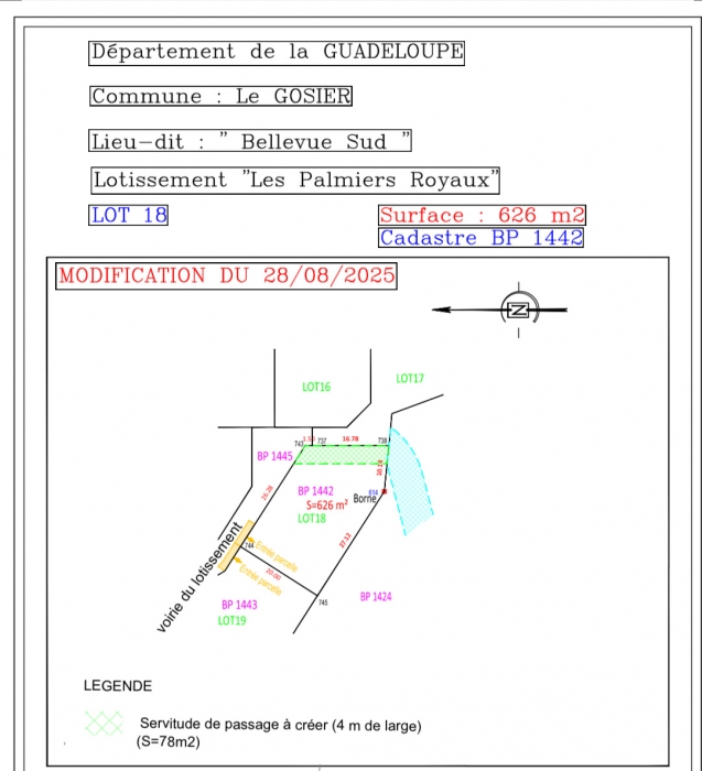 Sur la commune du Gosier, secteur les Salines, nous vous proposons ce terrain plat de 626 m2 (lot 18) avec vue dégagée sur la foret dans un lotissement viabilisé qui sera terminé en décembre 2025. Il s'agit d'un lotissement de 20 lots, sur lequel seront édifiées des constructions à usage d'habitation individuelle. L'emprise au sol autorisée est de 30% de la surface de la parcelle.