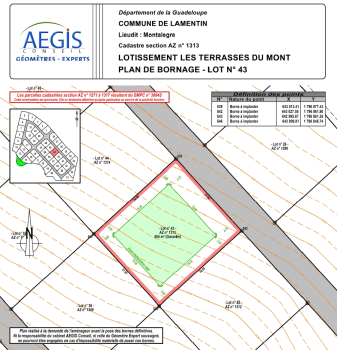 Terrains à vendre secteur LAMENTIN VUE MONTAGNE LOT No 43